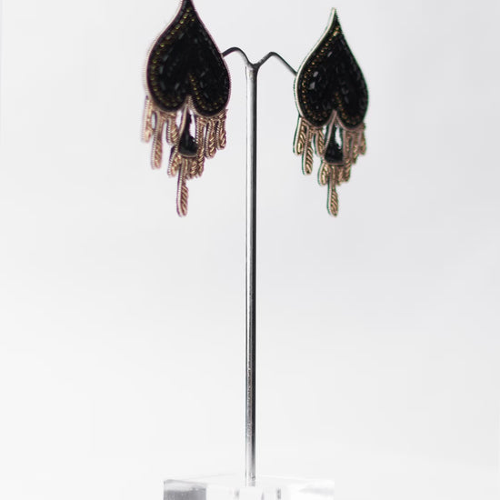 Featuring a refined spade shape outlined earrings in a graceful gold dripping pattern. These earrings are perfect for adding a touch of luxury to your everyday or evening attire.